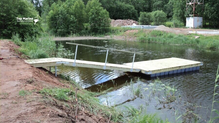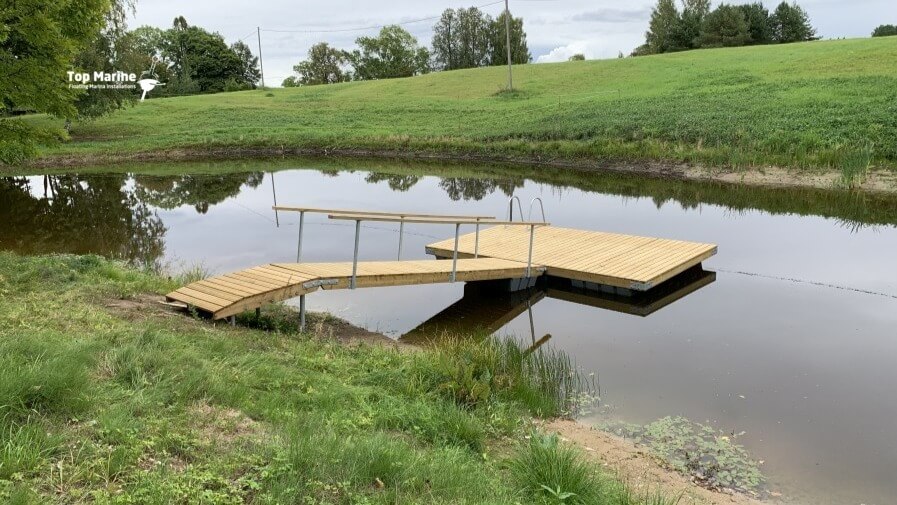 Uimalaituri varustettuna käyntisillalla ja kaiteilla tarjoaa helpon ja turvallisen pääsyn veteen sekä lisää käyttömukavuutta rannalla.