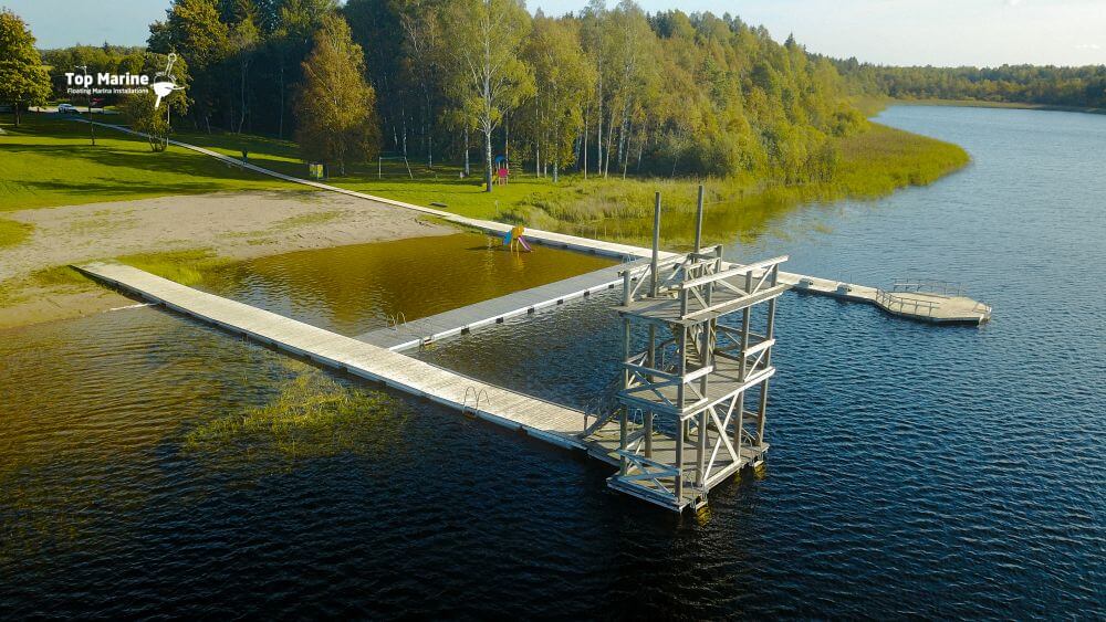 Viljandin soutukeskuksessa sijaitseva uimalaituri tarjoaa modernin ja turvallisen kiinnityspaikan veneilijöille ja uimareille.